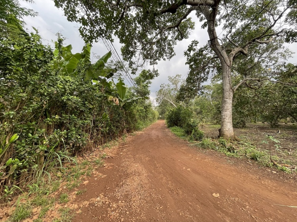 Đường đất rộng 5m, đang trồng điều.