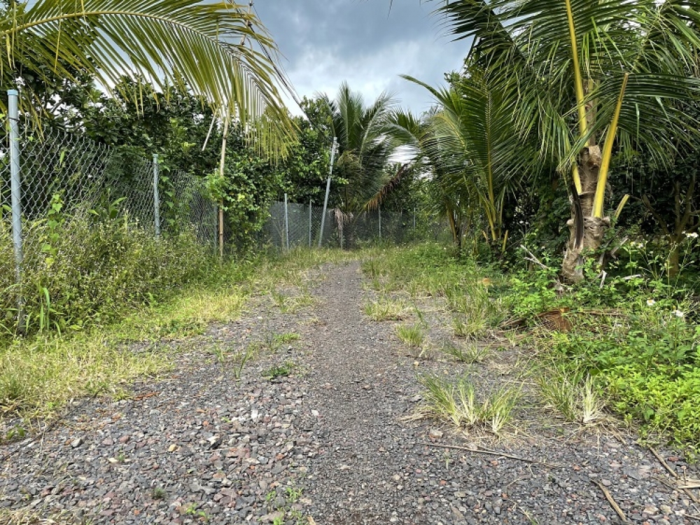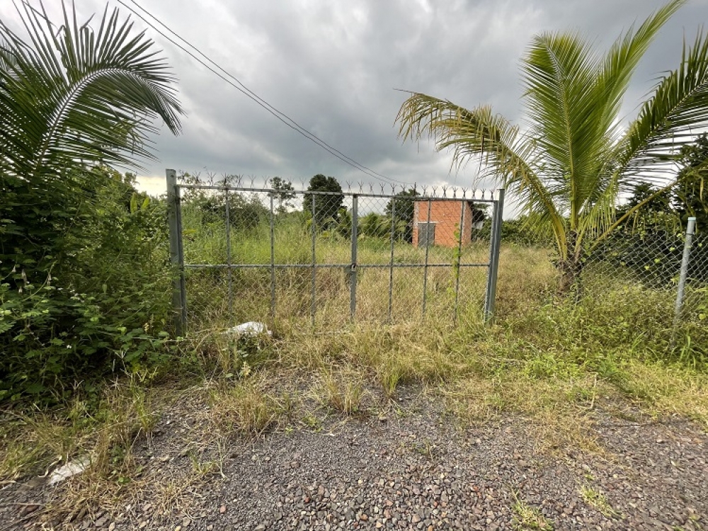 Diện tích 42m x 73m = 3786m2 . Trên đất đang trồng bưởi, sầu riêng, mít.
