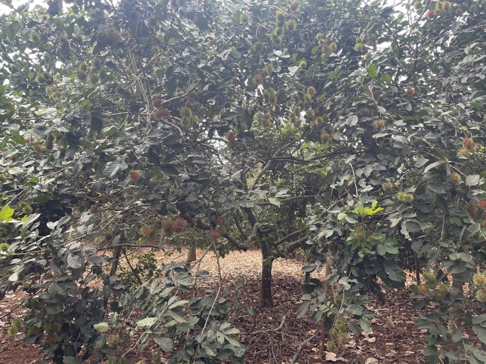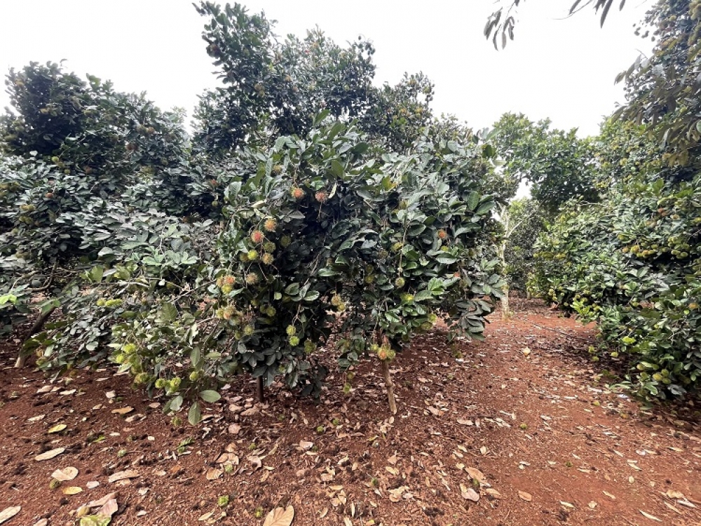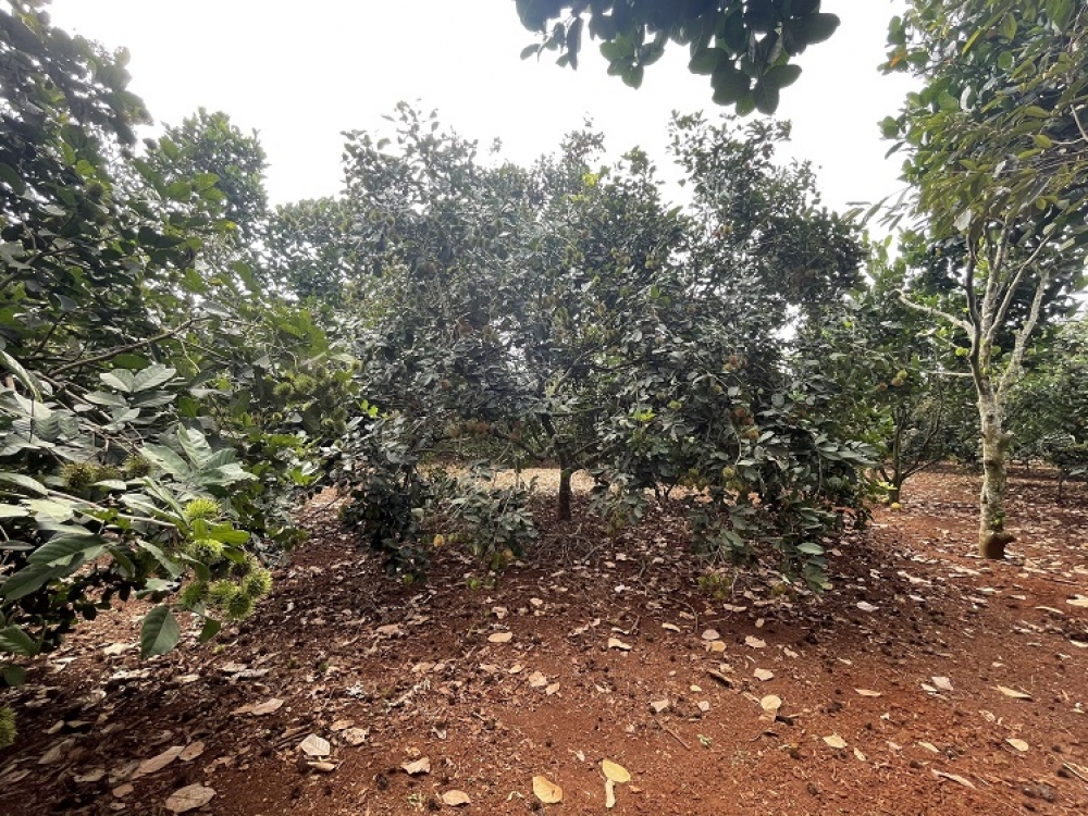 Diện tích 80m x 105m2. Đất trồng chôm chôm, sầu riêng, măng cụt, bưởi