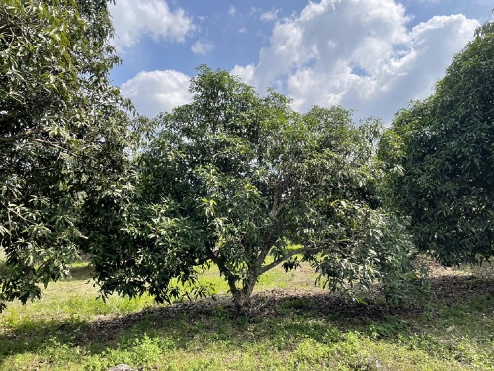 Tổng diện tích 9878m2 có 3 sổ và 2 đường vào đất. Trên đất trồng xoài.
