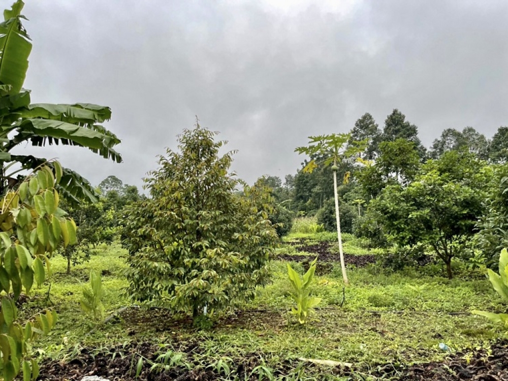 Vườn bưởi , sầu riêng và nhiều cây trái đã cho thu hoạch.